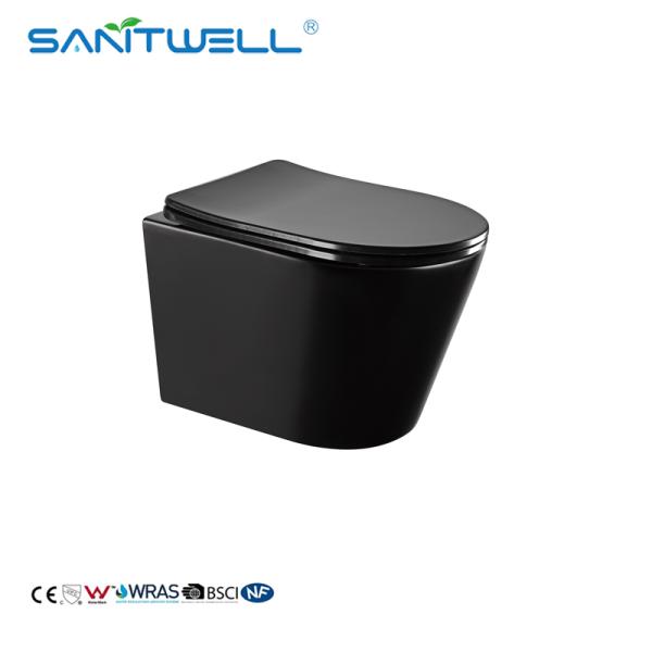 Chaozhou Hot Sale Matt Black Ceramic Rimless wall-hung toilet For European Market Images |