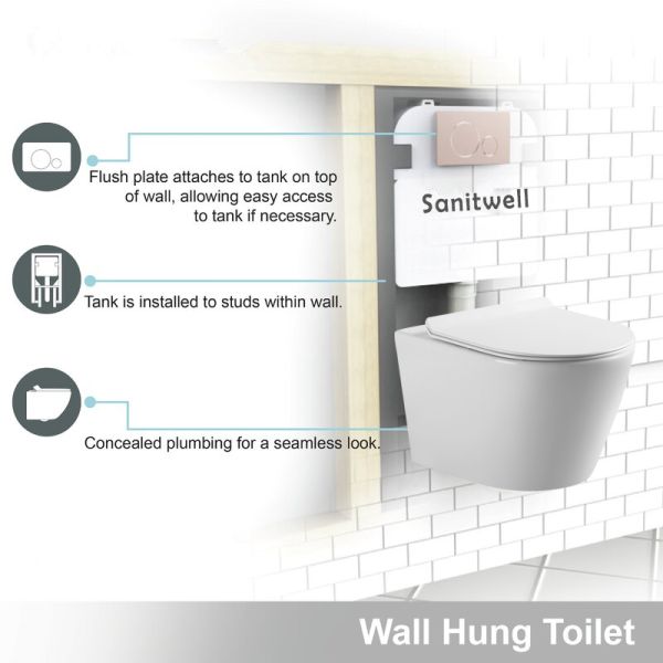 - The wall hung toilet is made of high quality ceramic materials.